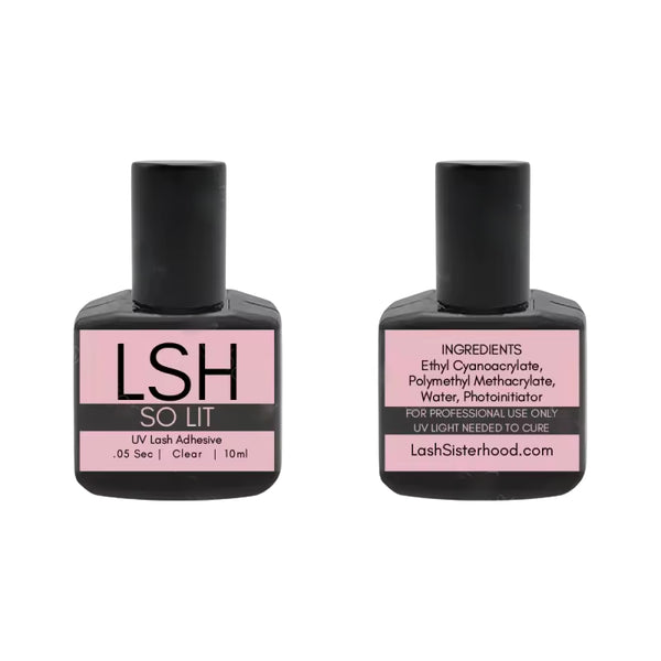 So Lit works with a UV light! Amazing retention and much less cyanoacrylate than normal lash adhesives. Great for sensitive clients.